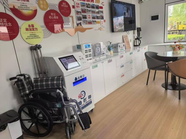 工会便民区可谓“移动日子小帮手”,将有用与交心做到极致。便民雨伞、充电设备、急救物资、自助打印终端机、轮椅等物资一应俱全,满意居民日常所需。休闲日子区成为环卫工人歇脚、快递员补水、邻里畅谈的“温馨港湾”。从应急物资到日常便当,从硬件保证到情感安慰,这儿让“便民”不再是标语,而是触手可及的日子体会。